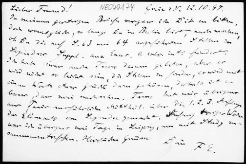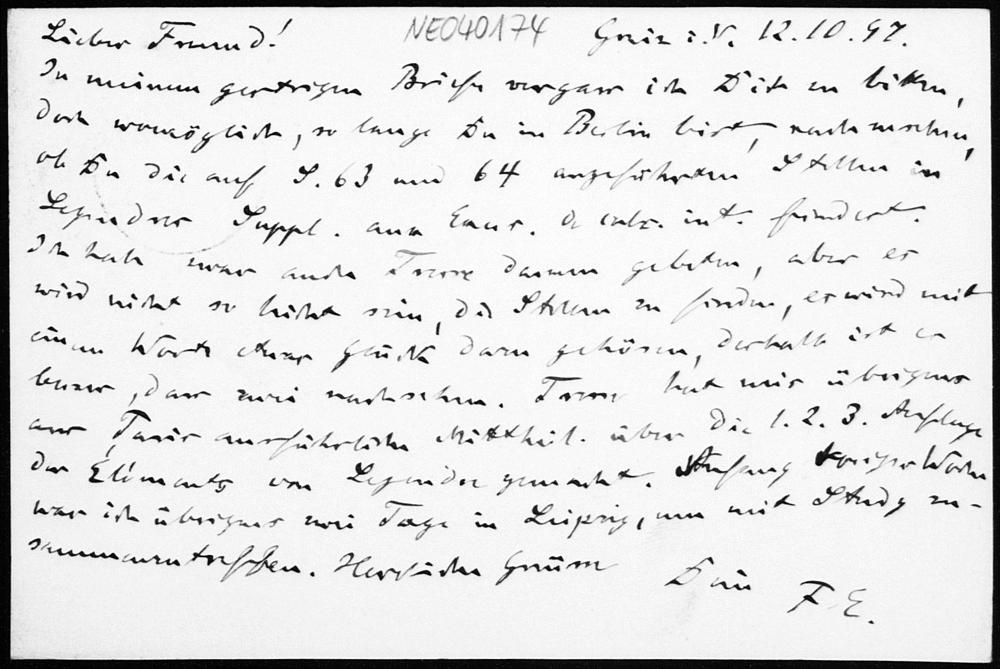 Postkarte von Friedrich Engel an Paul Stäckel vom 12.10.1897