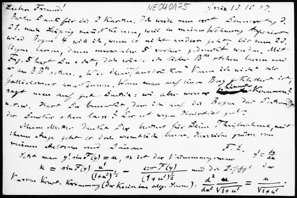 Postkarte von Friedrich Engel an Paul Stäckel vom 13.10.1897