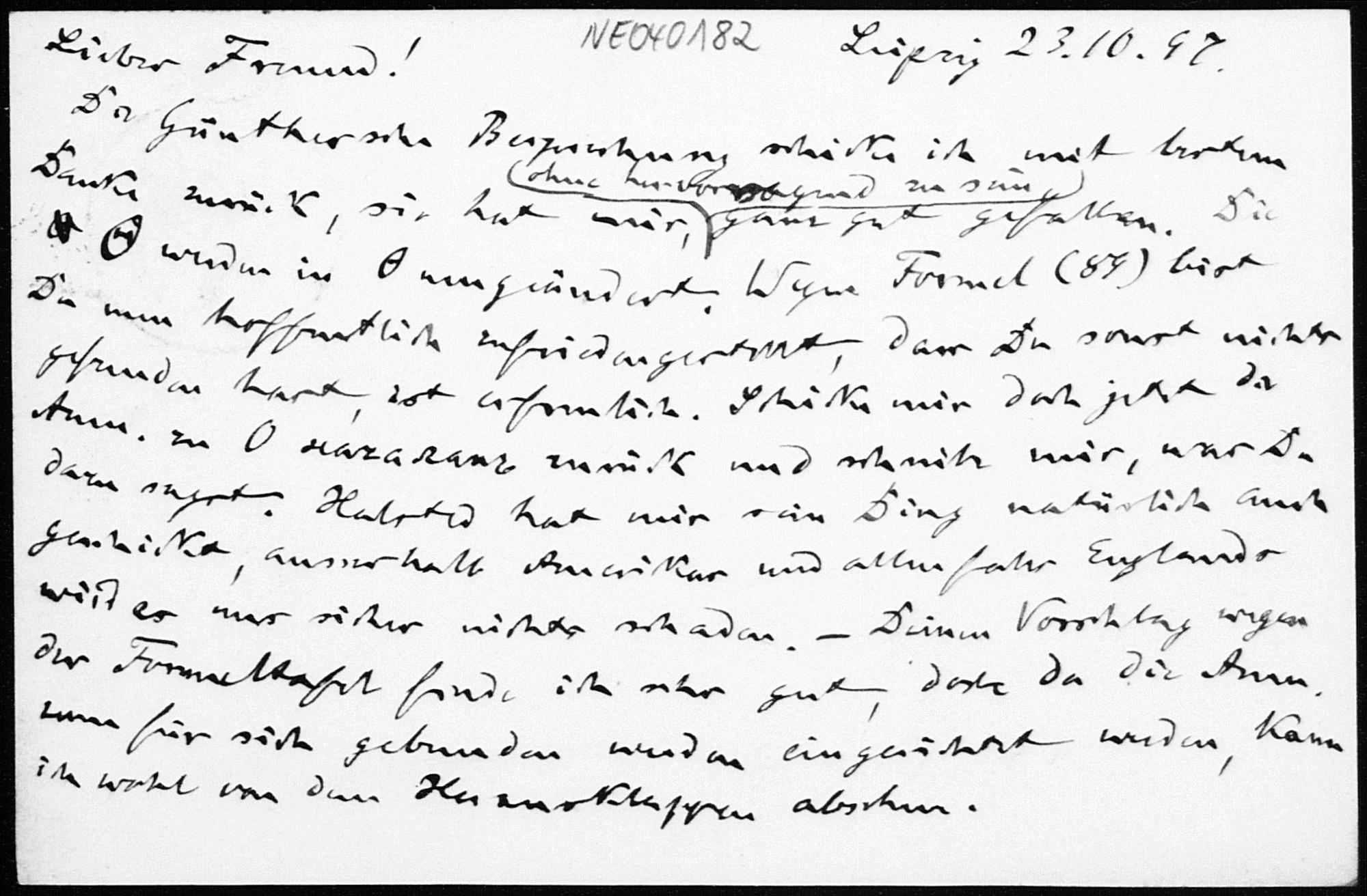 Postkarte von Friedrich Engel an Paul Stäckel vom 23.10.1897