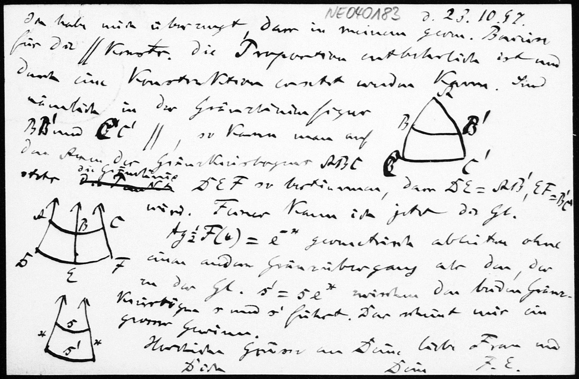 Postkarte von Friedrich Engel an Paul Stäckel vom 23.10.1897