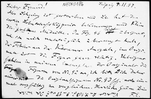 Postkarte von Friedrich Engel an Paul Stäckel vom 4.11.1897