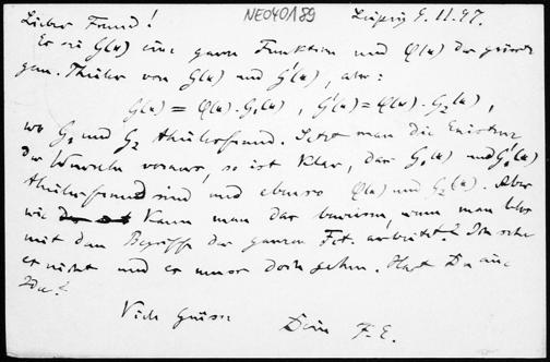 Postkarte von Friedrich Engel an Paul Stäckel vom 9.11.1897