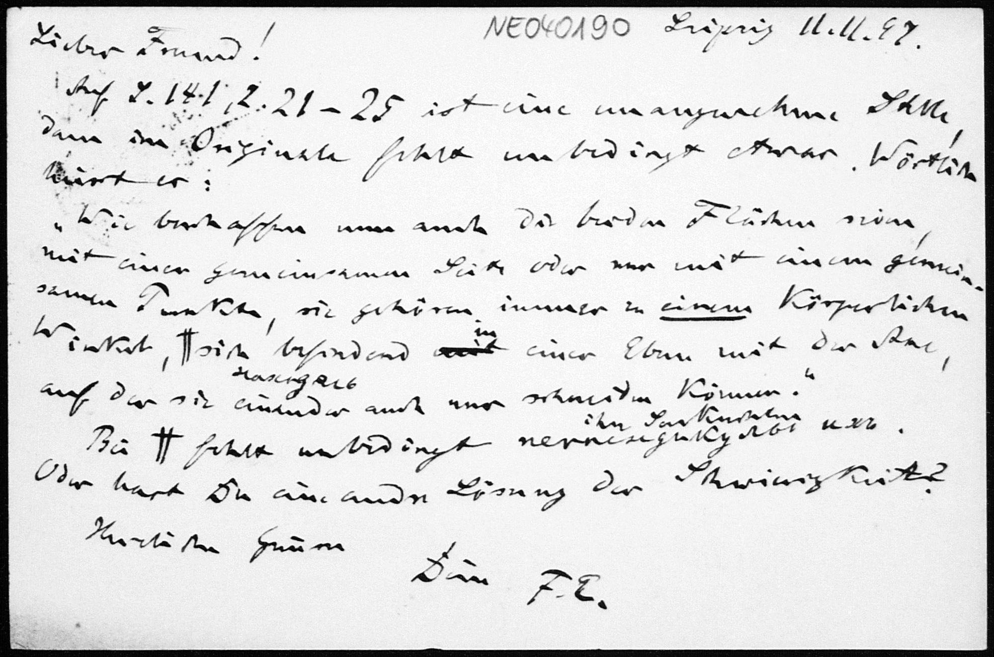 Postkarte von Friedrich Engel an Paul Stäckel vom 11.11.1897