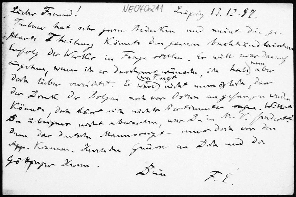 Postkarte von Friedrich Engel an Paul Stäckel vom 13.12.1897