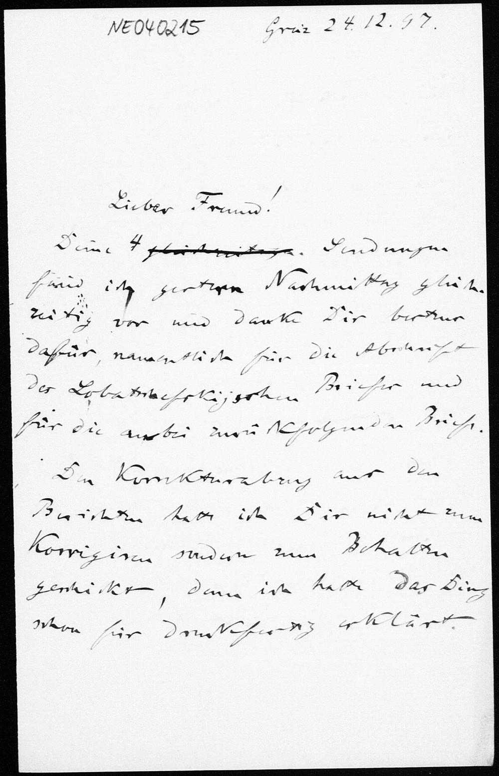 Brief von Friedrich Engel an Paul Stäckel vom 24.12.1897