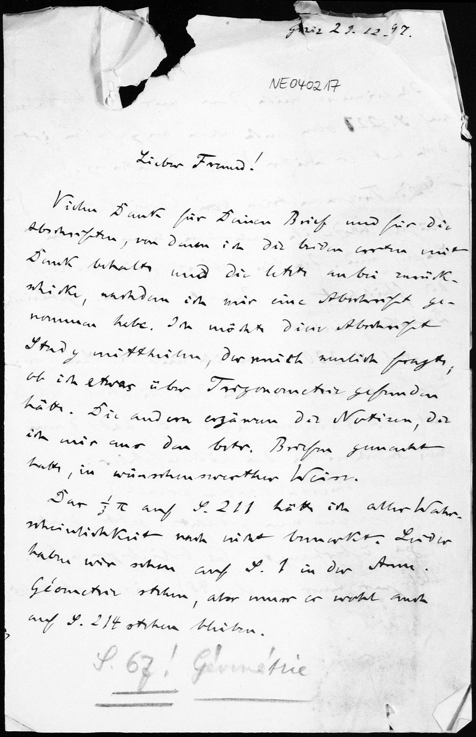 Brief von Friedrich Engel an Paul Stäckel vom 29.12.1897