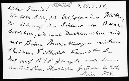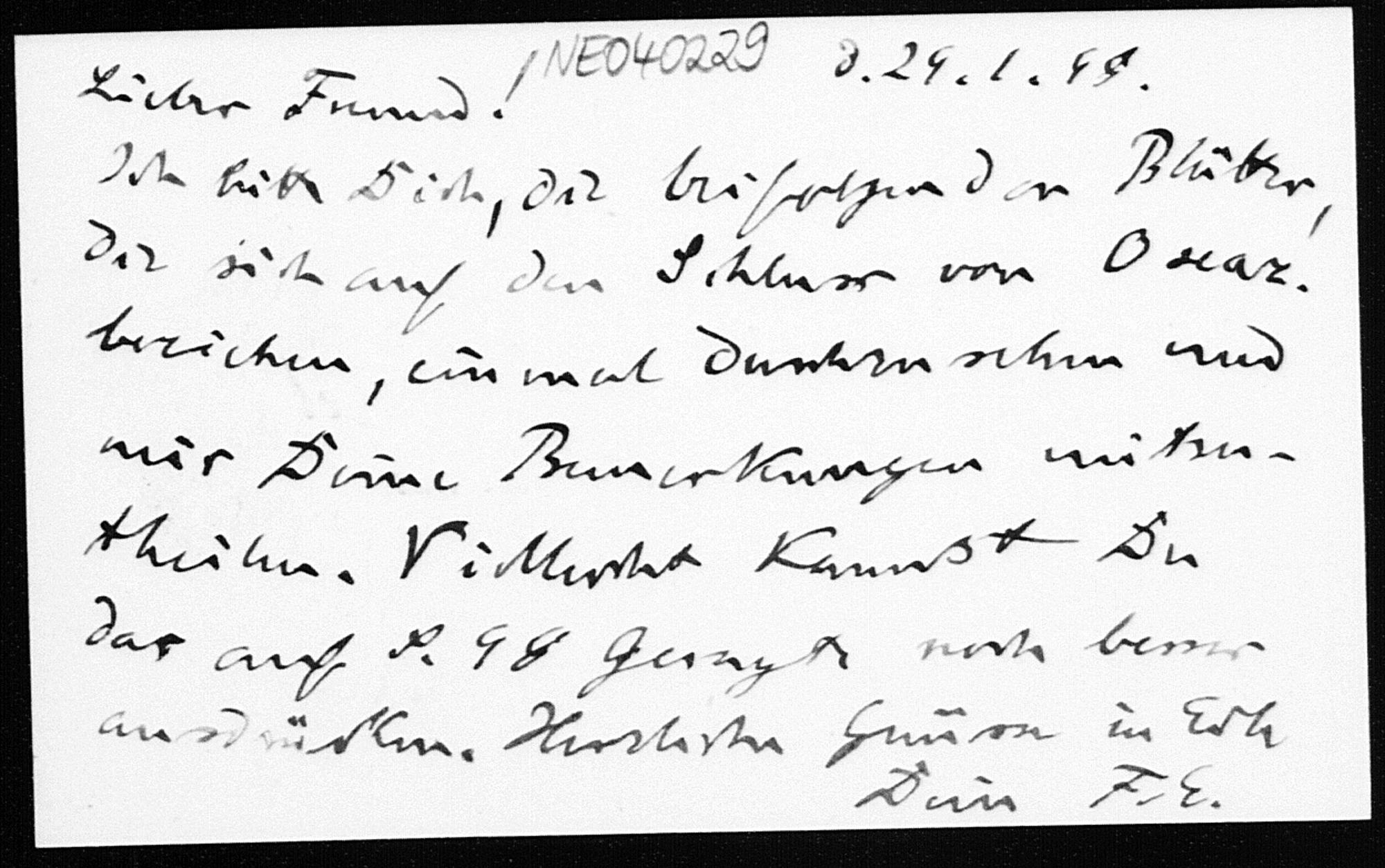 Visitenkarte von Friedrich Engel an Paul Stäckel vom 29.1.1898
