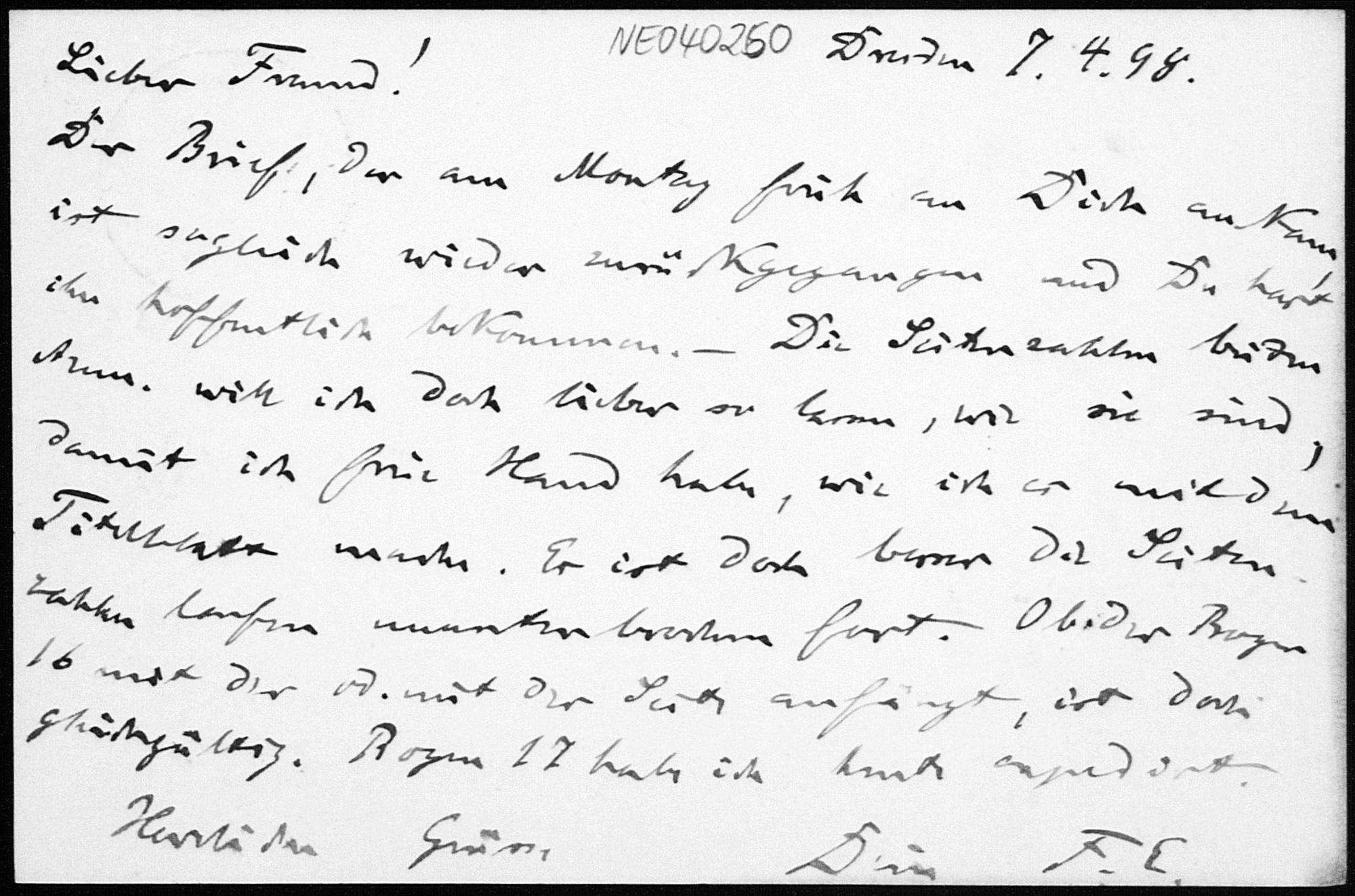 Postkarte von Friedrich Engel an Paul Stäckel vom 7.4.1898