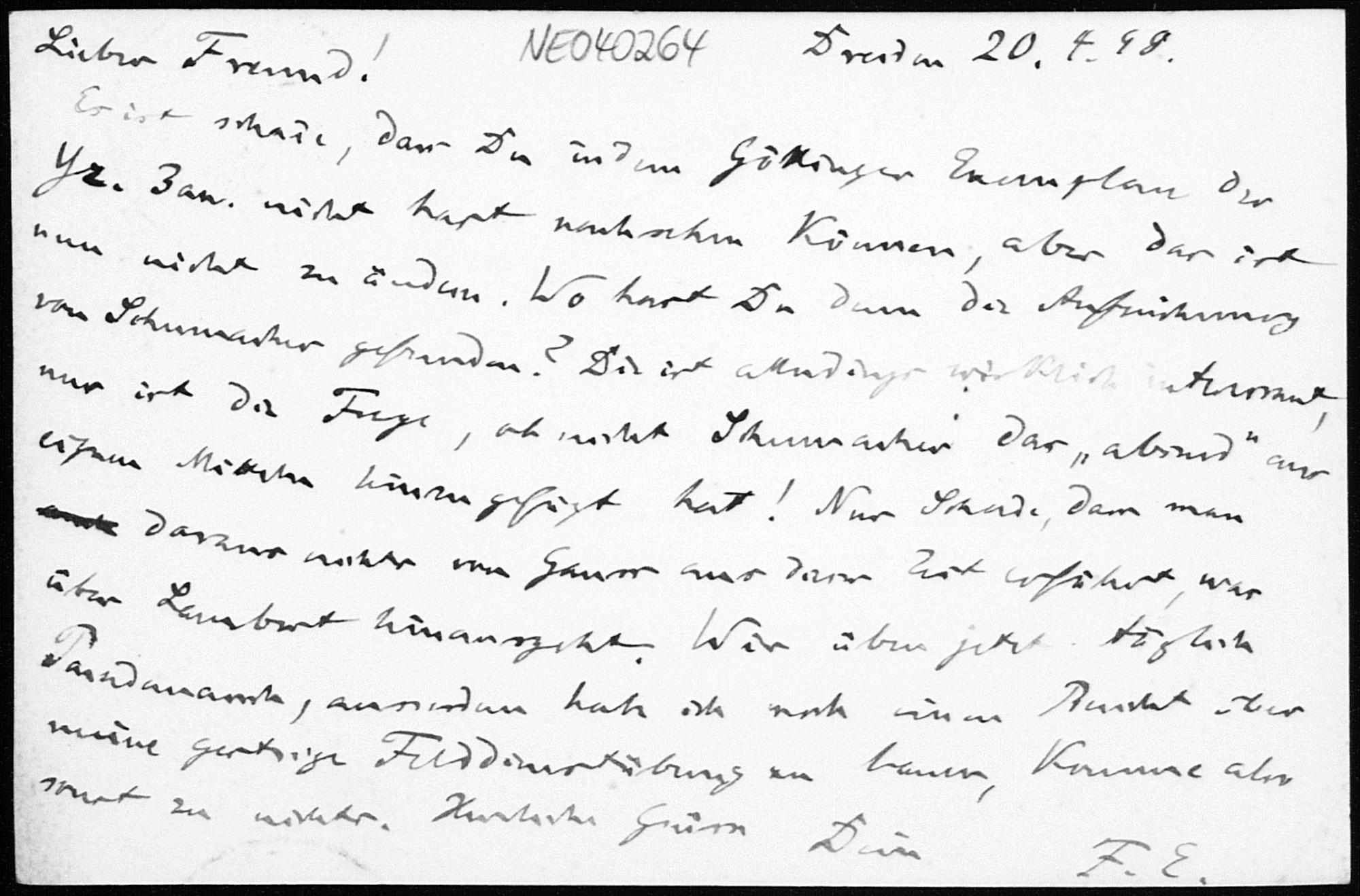 Postkarte von Friedrich Engel an Paul Stäckel vom 20.4.1898
