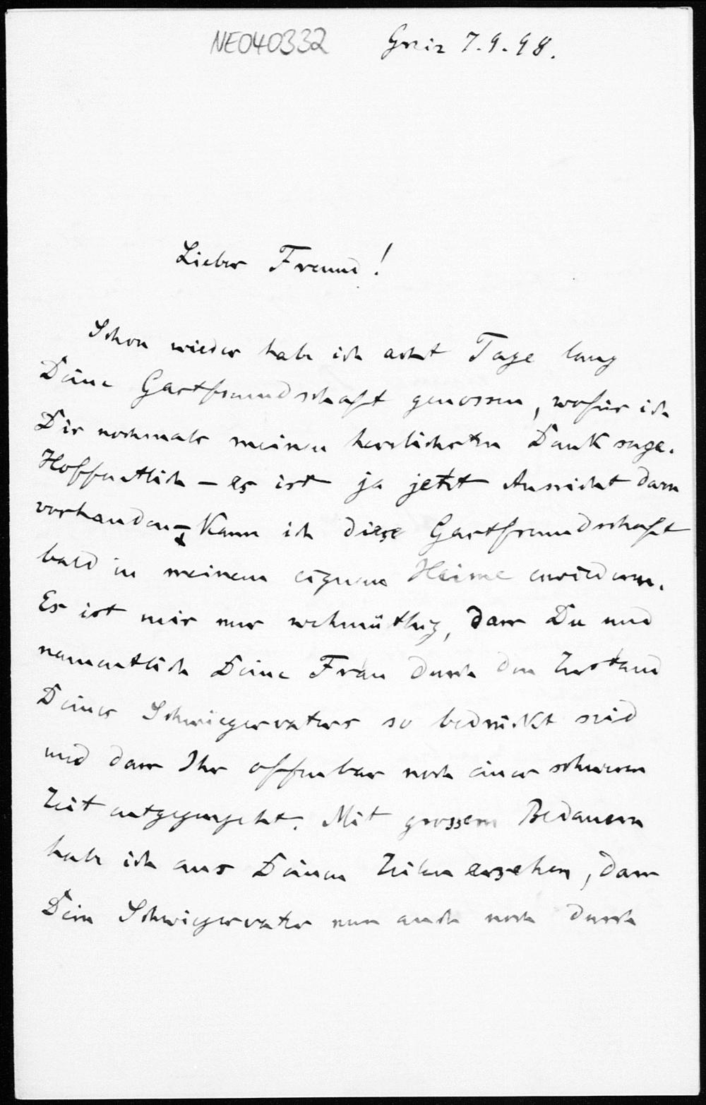 Brief von Friedrich Engel an Paul Stäckel vom 7.9.1898