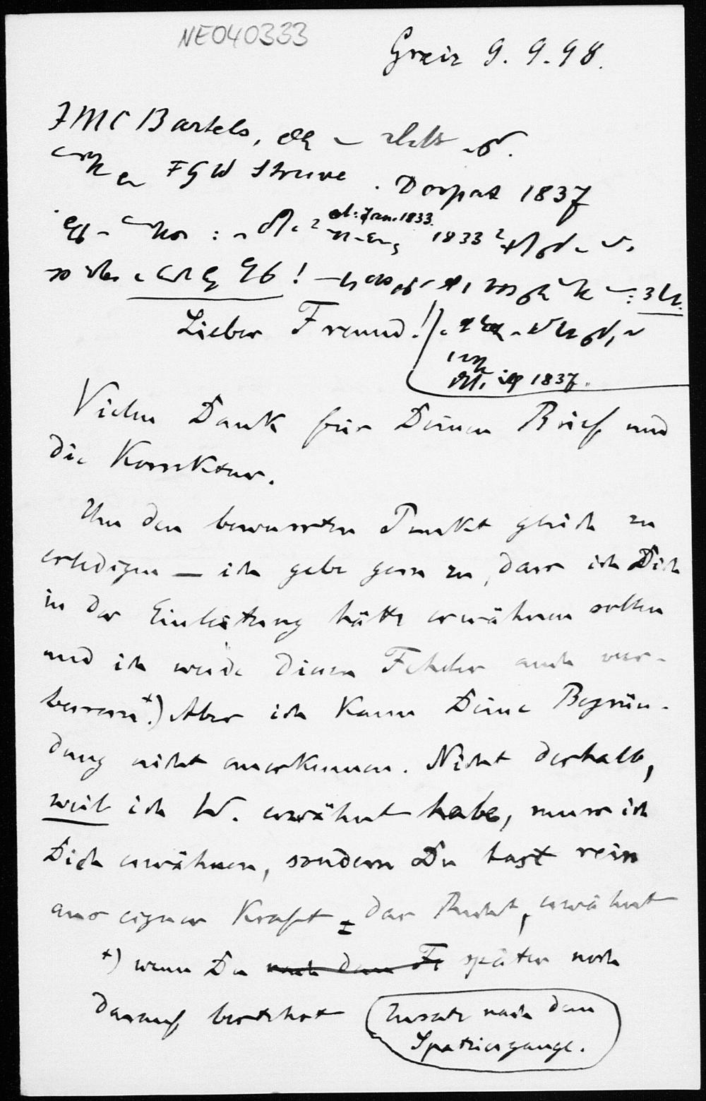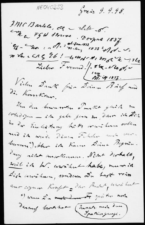 Brief von Friedrich Engel an Paul Stäckel vom 9.9.1898