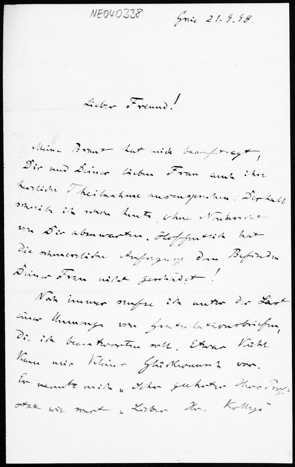 Brief von Friedrich Engel an Paul Stäckel vom 21.9.1898
