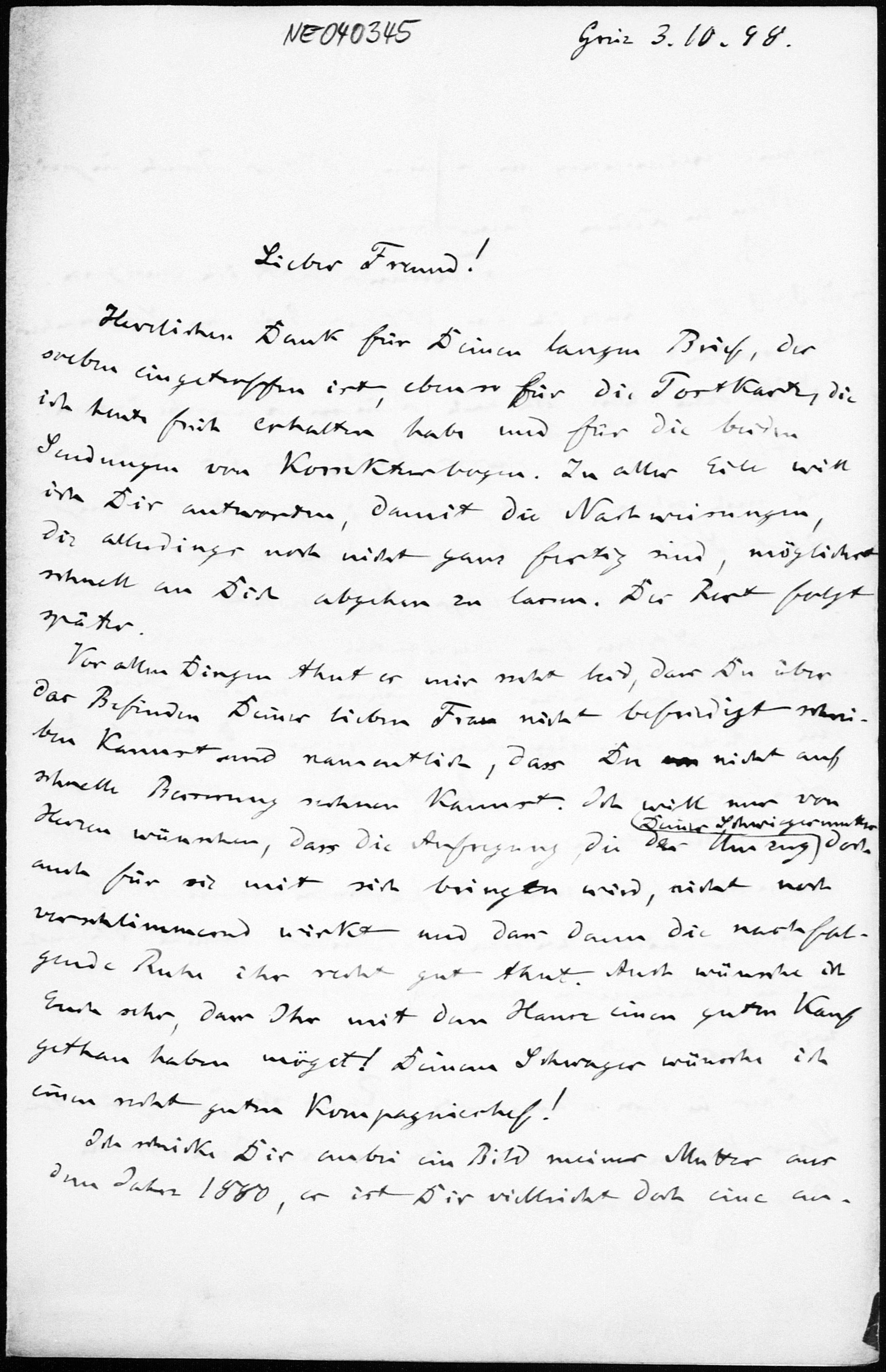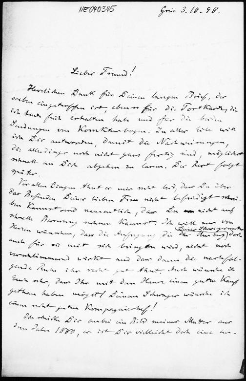 Brief von Friedrich Engel an Paul Stäckel vom 3.10.1898