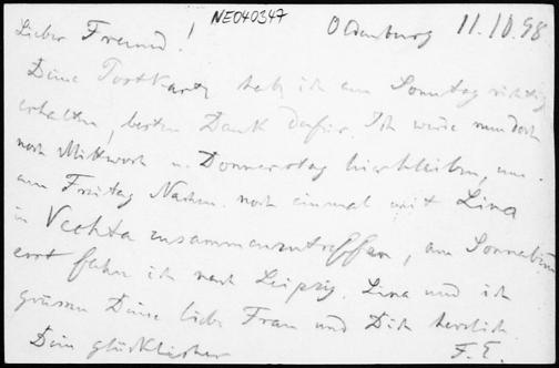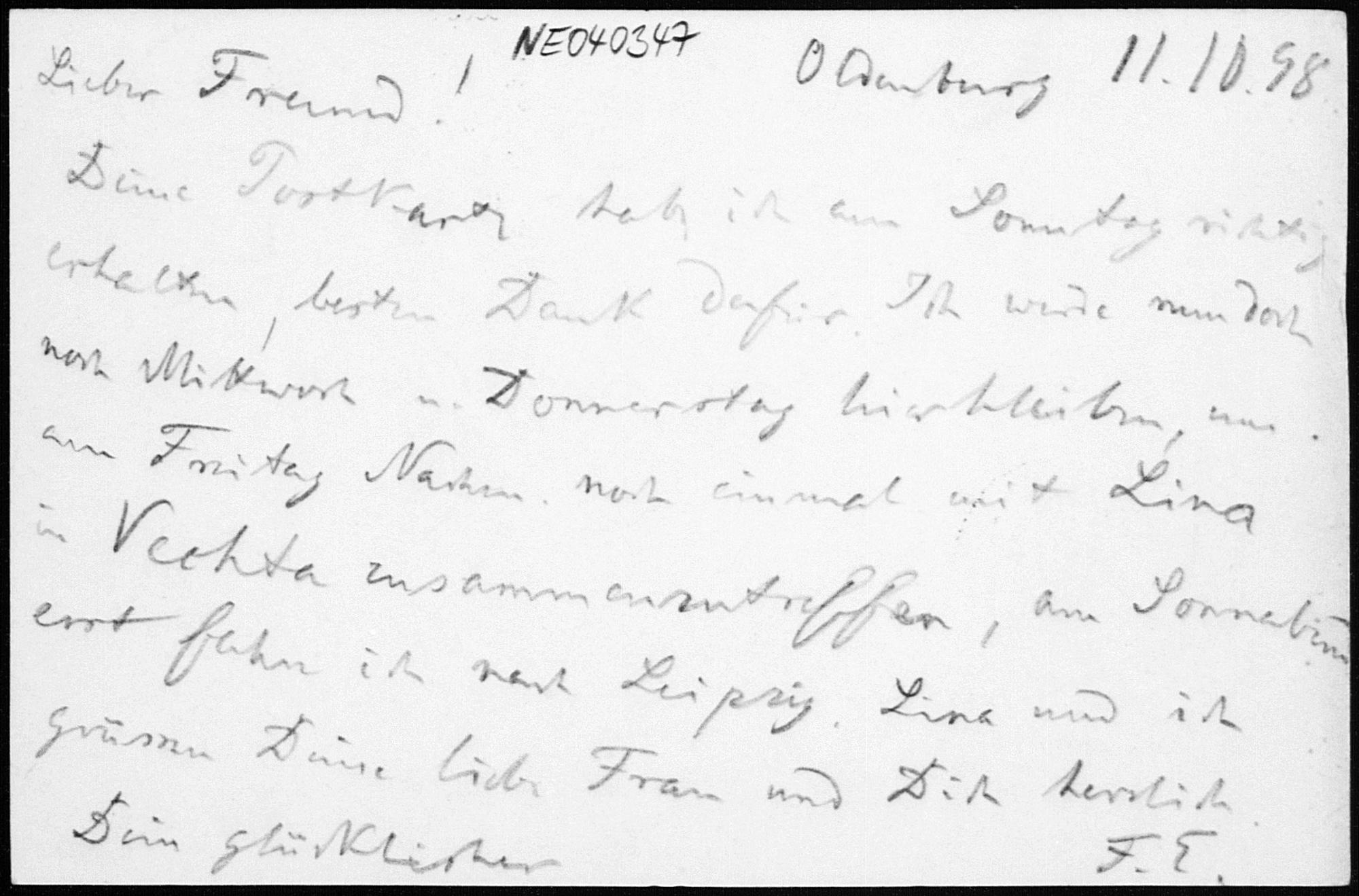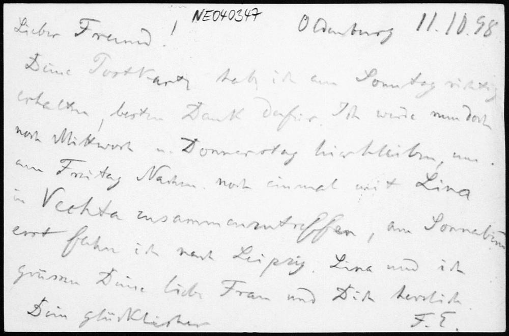 Postkarte von Friedrich Engel an Paul Stäckel vom 11.10.1898