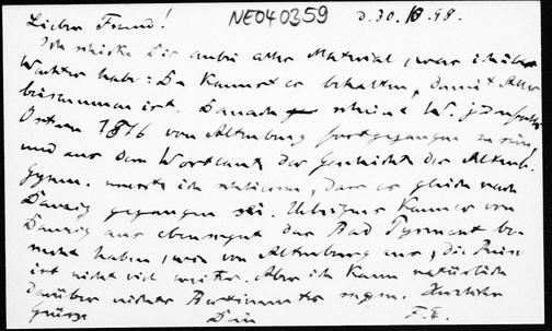 Visitenkarte von Friedrich Engel an Paul Stäckel vom 30.10.1898