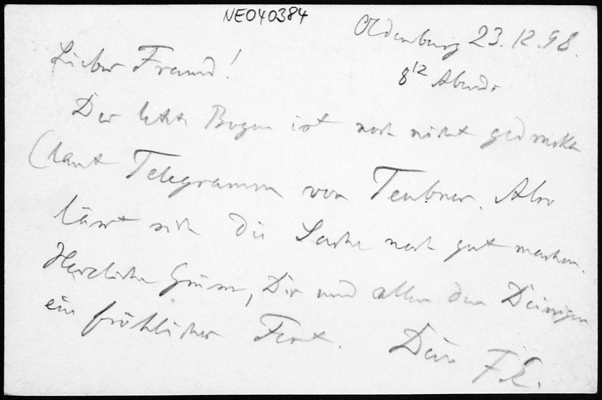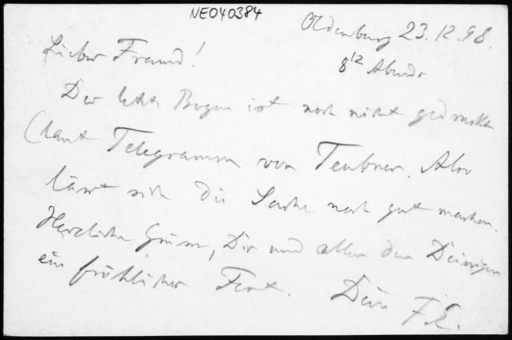 Postkarte von Friedrich Engel an Paul Stäckel vom 23.12.1898