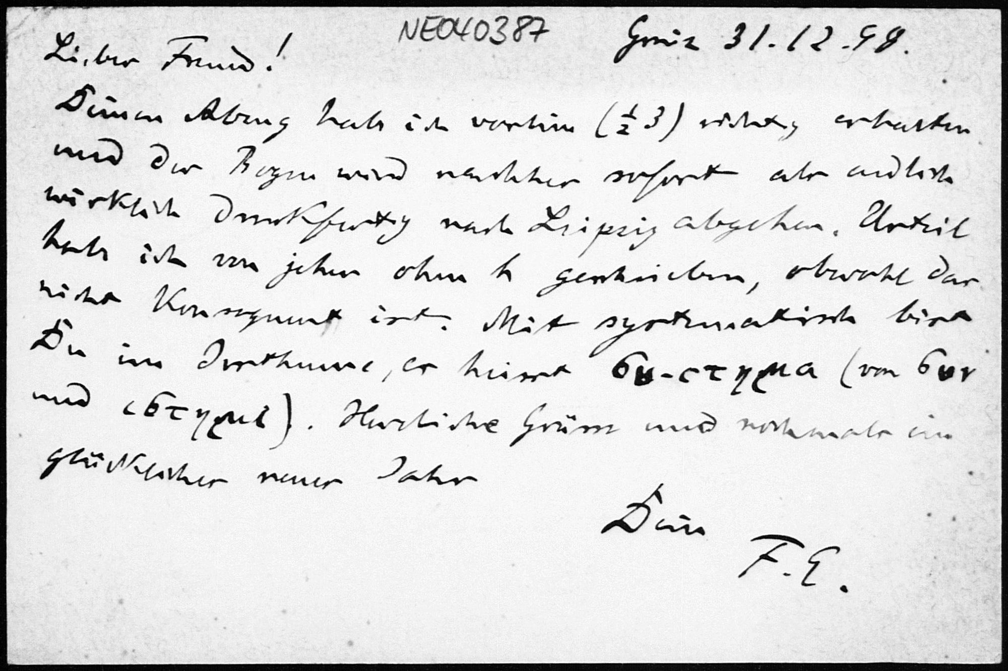 Postkarte von Friedrich Engel an Paul Stäckel vom 30.12.1898