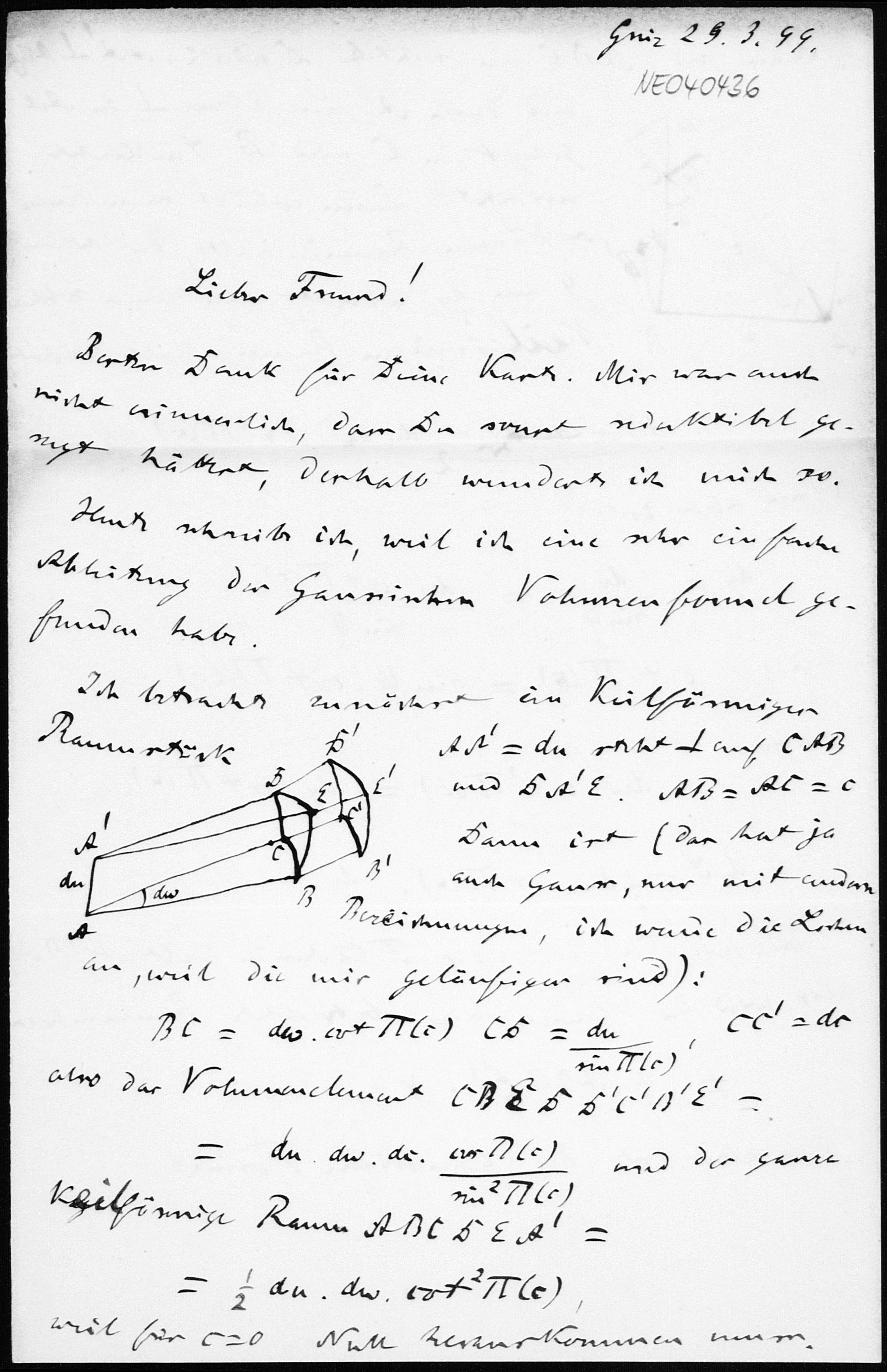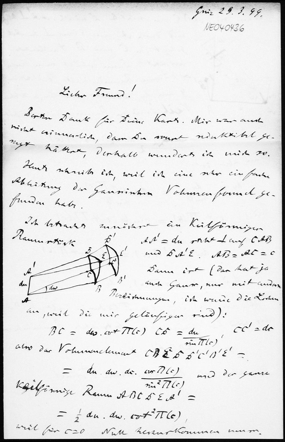 Brief von Friedrich Engel an Paul Stäckel vom 29.3.1899