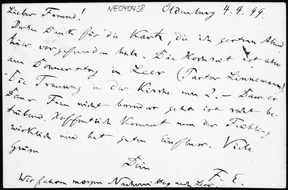 Postkarte von Friedrich Engel an Paul Stäckel vom 4.4.1899