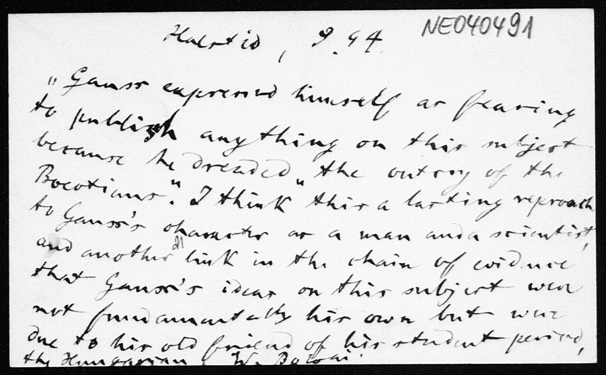 Visitenkarte gefunden in den Schreiben von Friedrich Engel an Paul Stäckel vom Oktober 1898. Die Visitenkarte war vermutlich einem Brief beigelegt