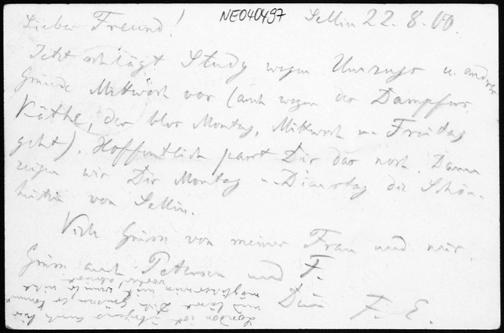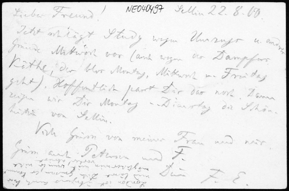 Postkarte von Friedrich Engel an Paul Stäckel vom 20.8.1900