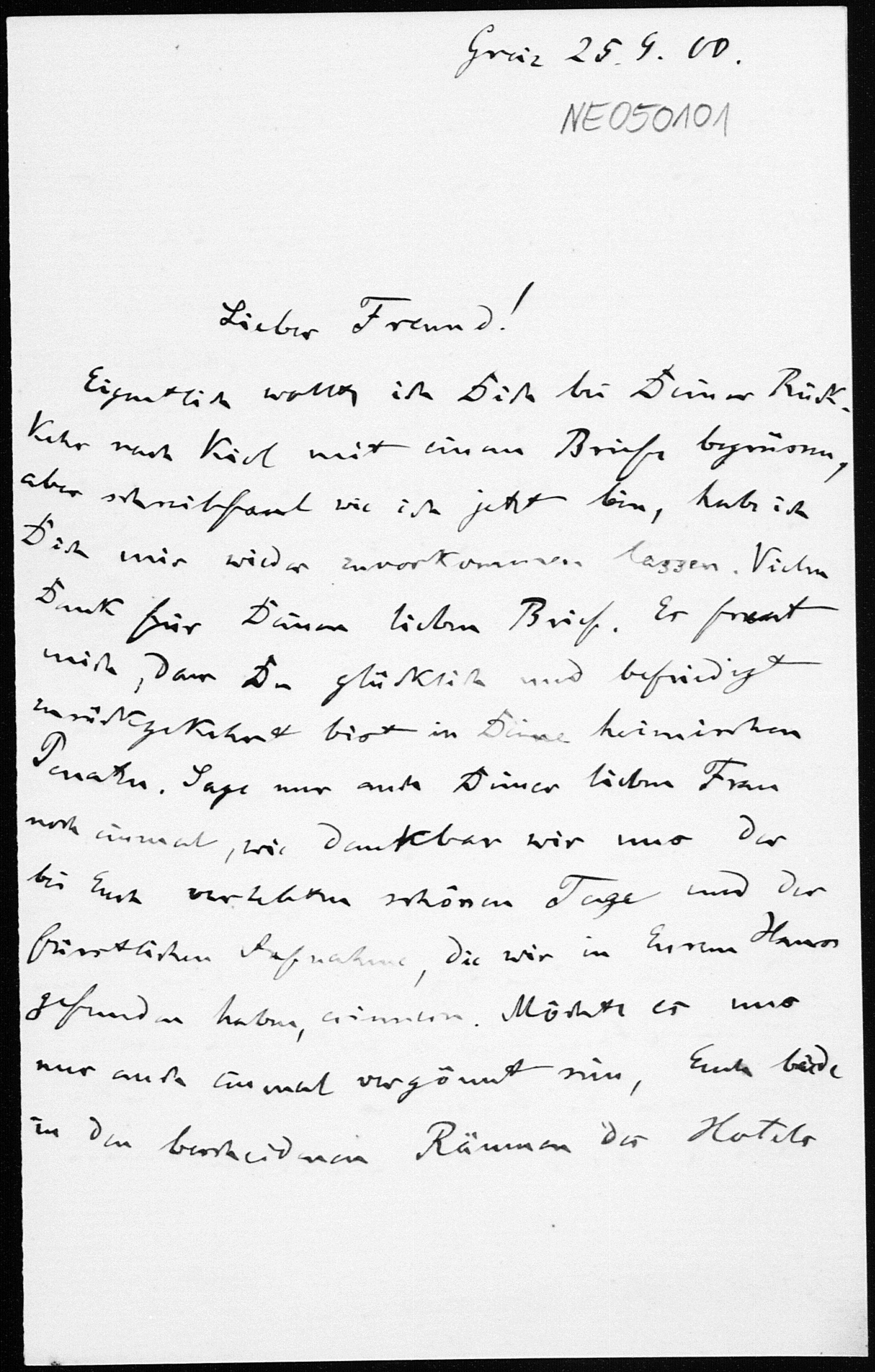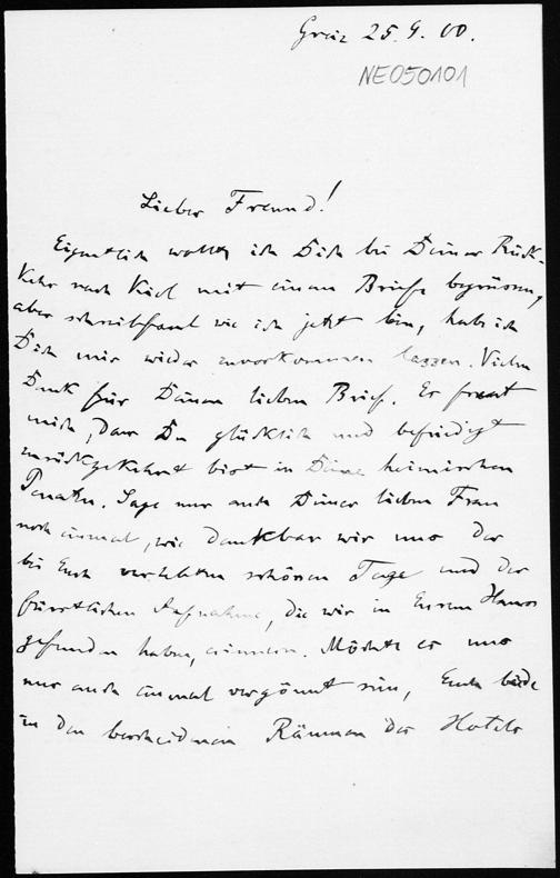 Brief von Friedrich Engel an Paul Stäckel vom 25.9.1900