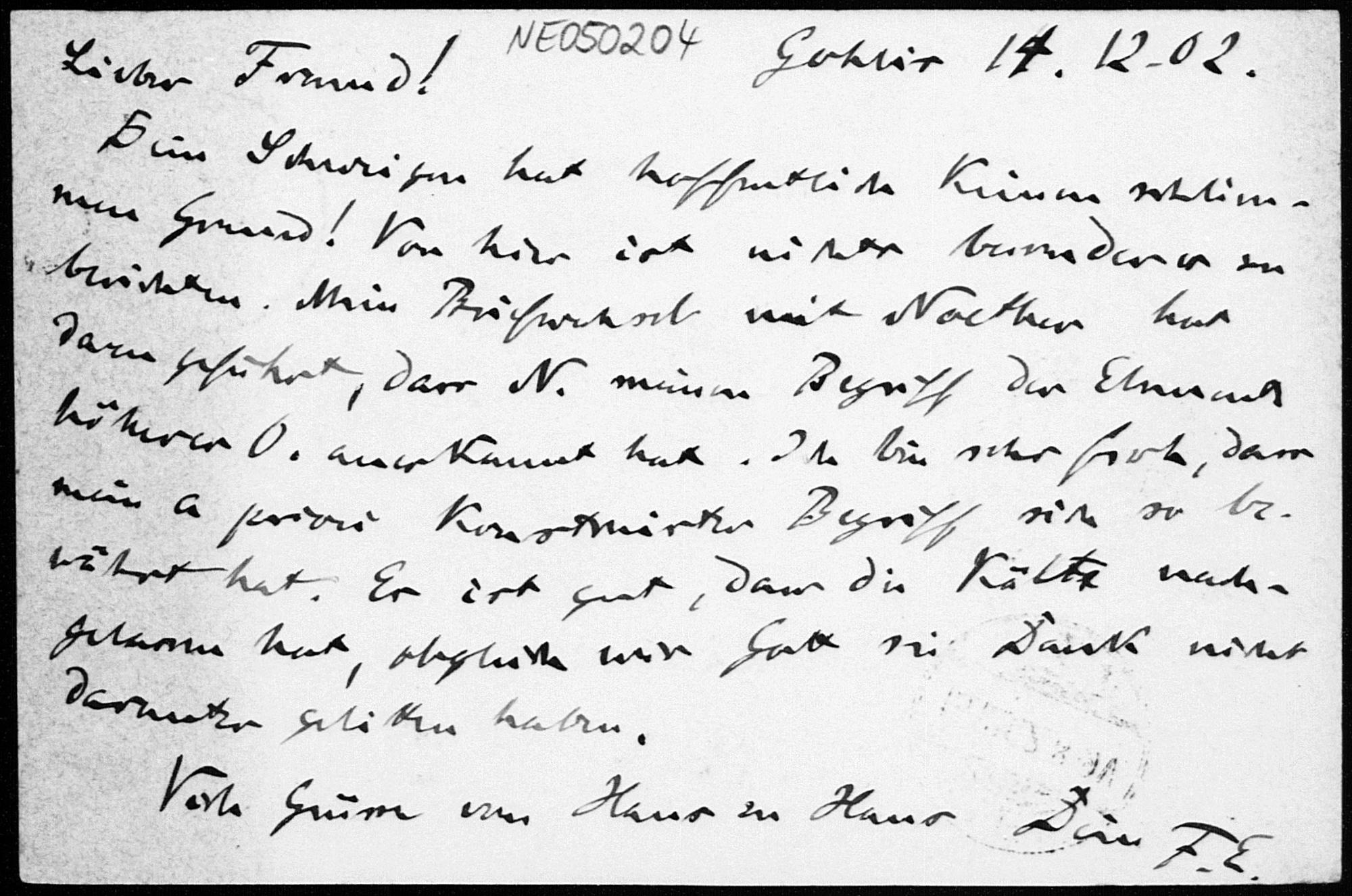 Postkarte von Friedrich Engel an Paul Stäckel vom 14.12.02