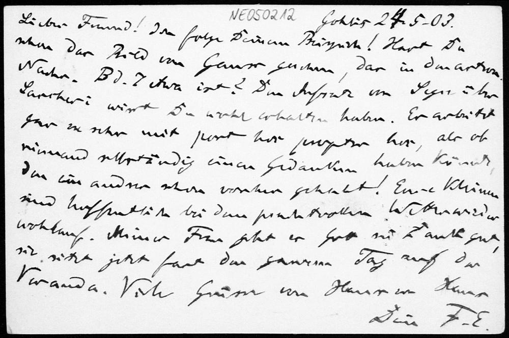 Postkarte von Friedrich Engel an Paul Stäckel vom 24.5.1903