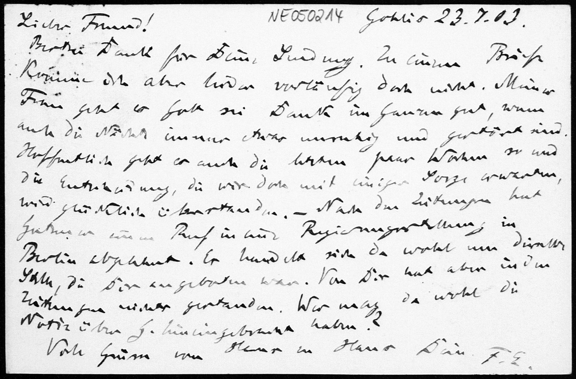 Postkarte von Friedrich Engel an Paul Stäckel vom 23.7.1903
