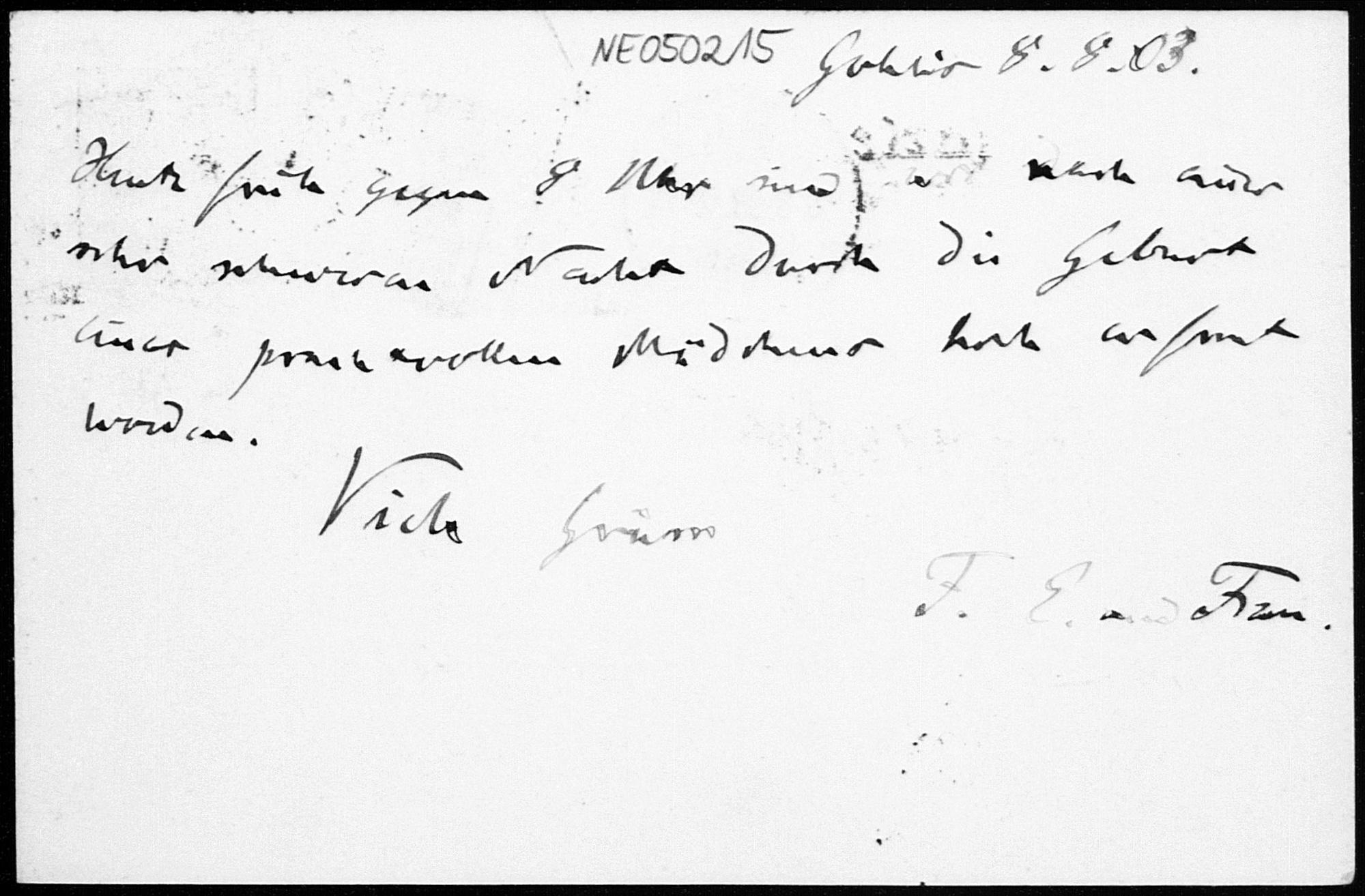 Postkarte von Friedrich Engel an Paul Stäckel vom 8.8.1903