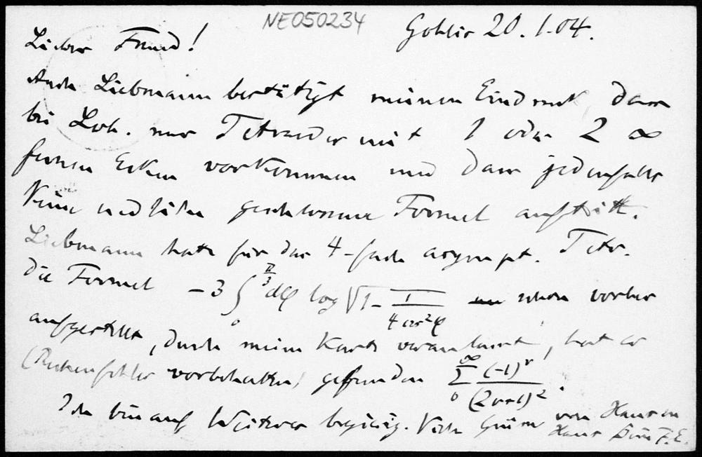 Postkarte von Friedrich Engel an Paul Stäckel vom 20.1.1904