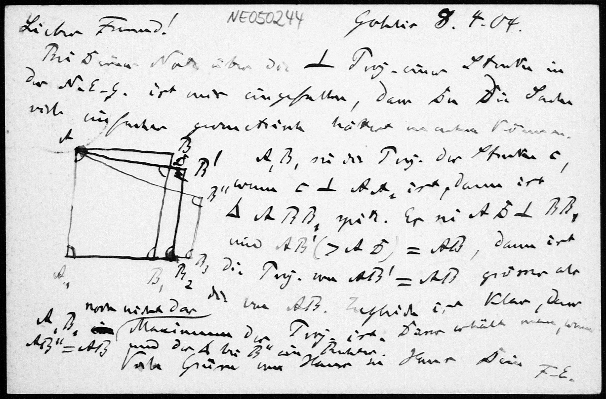 Postkarte von Friedrich Engel an Paul Stäckel vom 8.4.1904