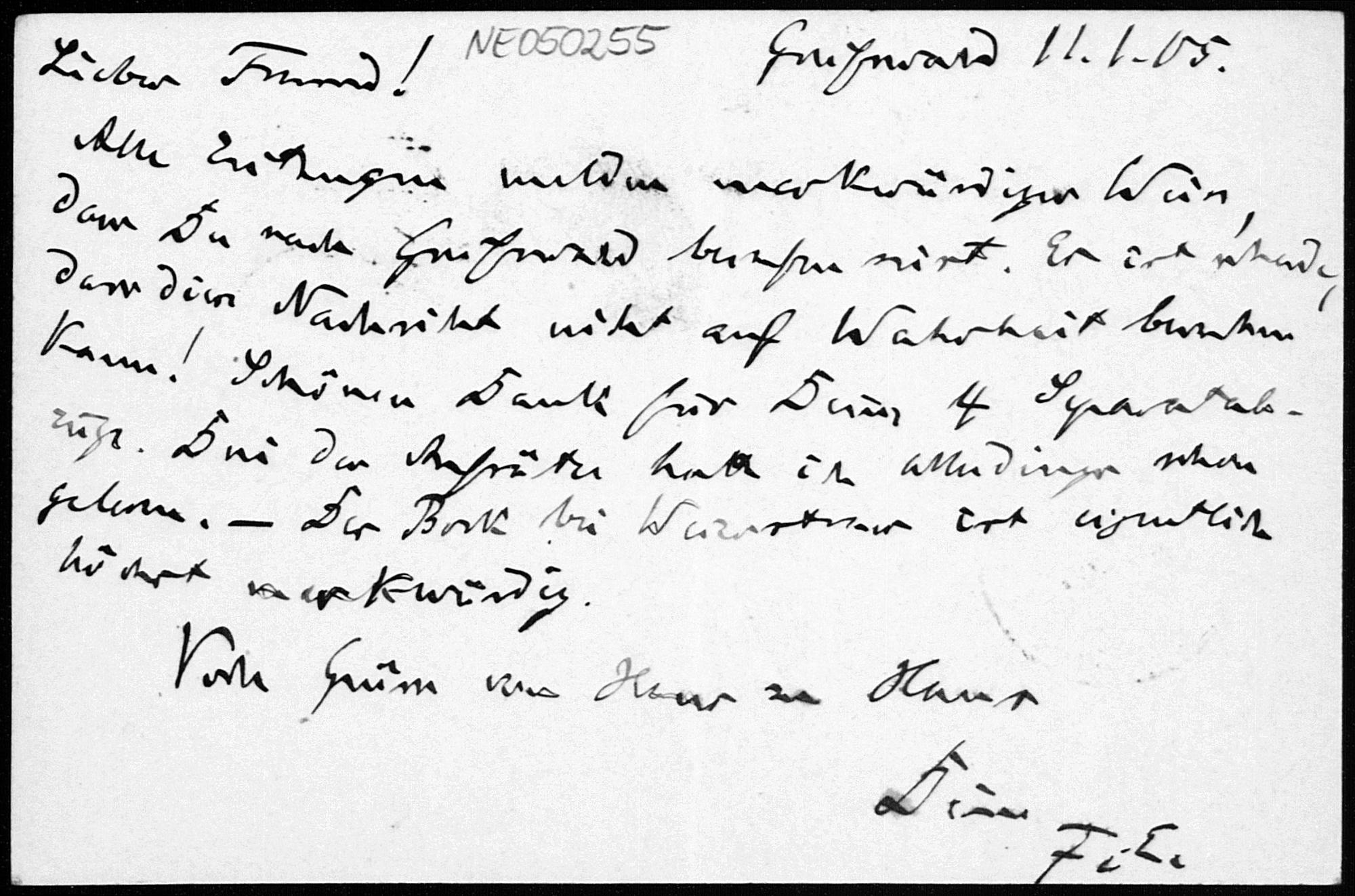 Postkarte von Friedrich Engel an Paul Stäckel vom 11.1.1905