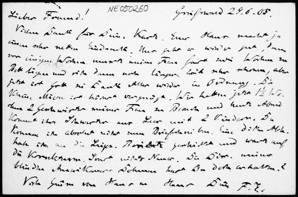 Postkarte von Friedrich Engel an Paul Stäckel vom 29.6.1905
