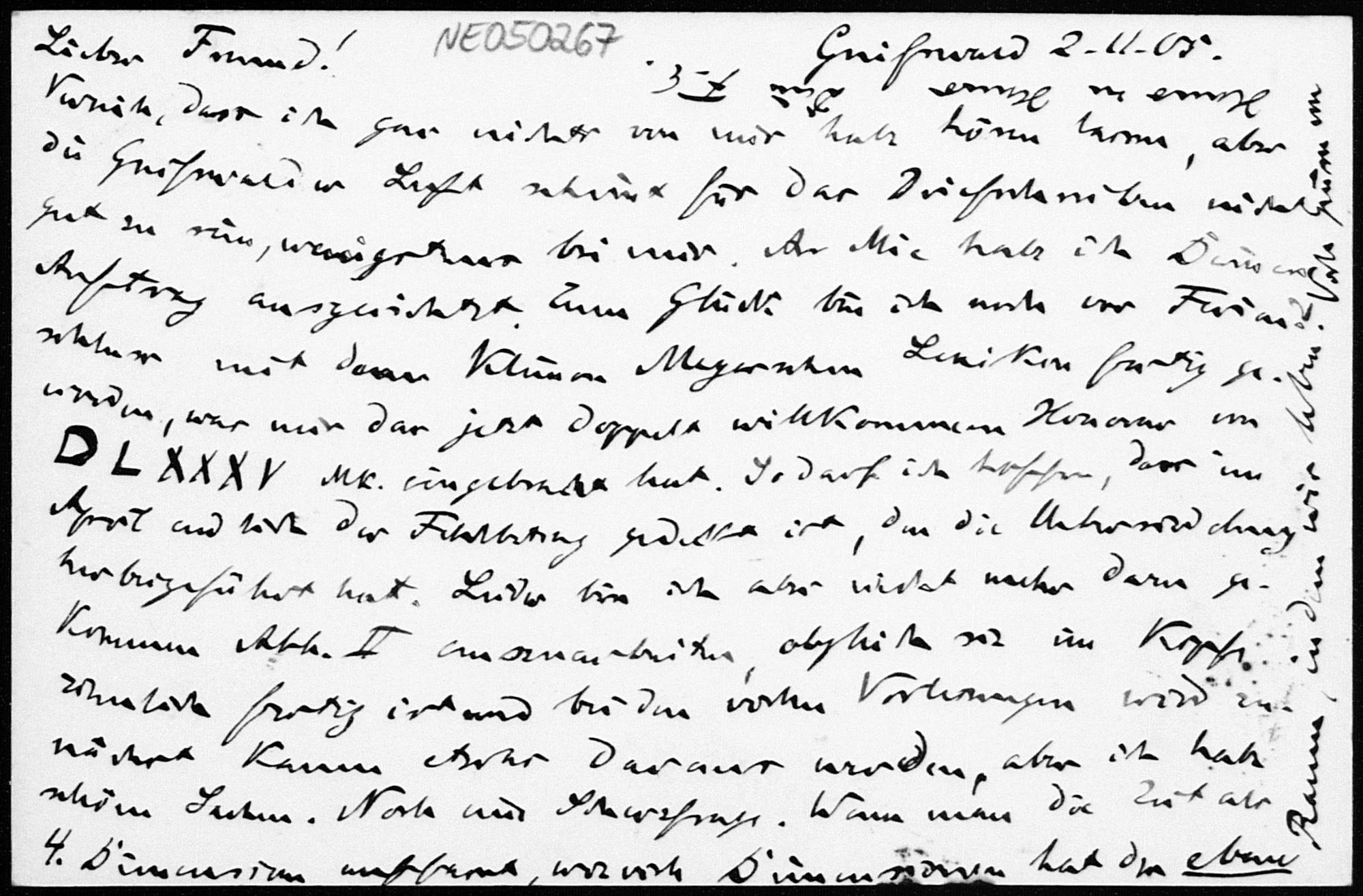 Postkarte von Friedrich Engel an Paul Stäckel vom 2.11.1905