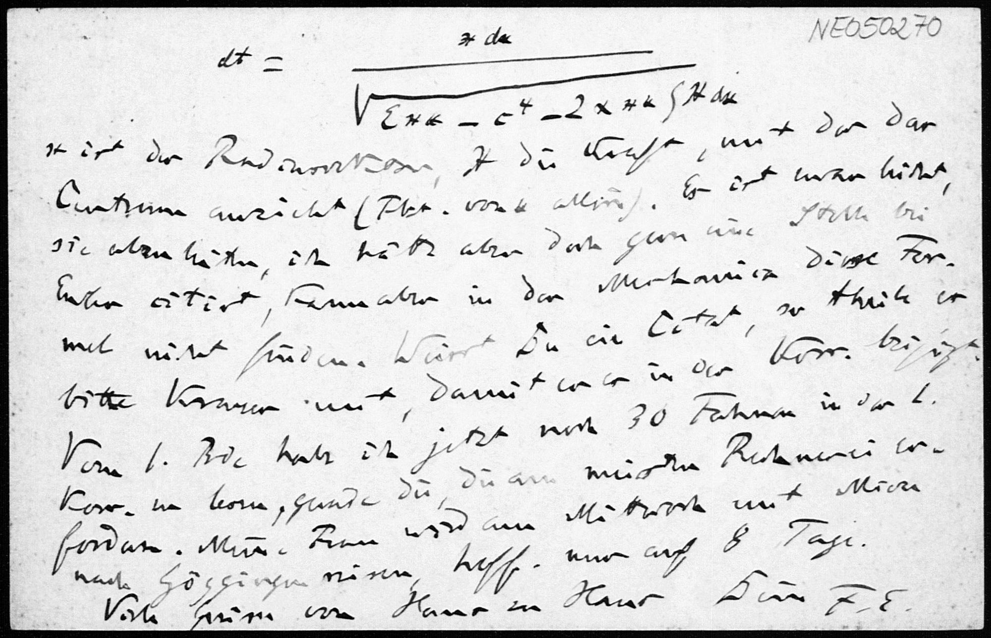 Postkarte von Friedrich Engel an Paul Stäckel vom 8.5.1913