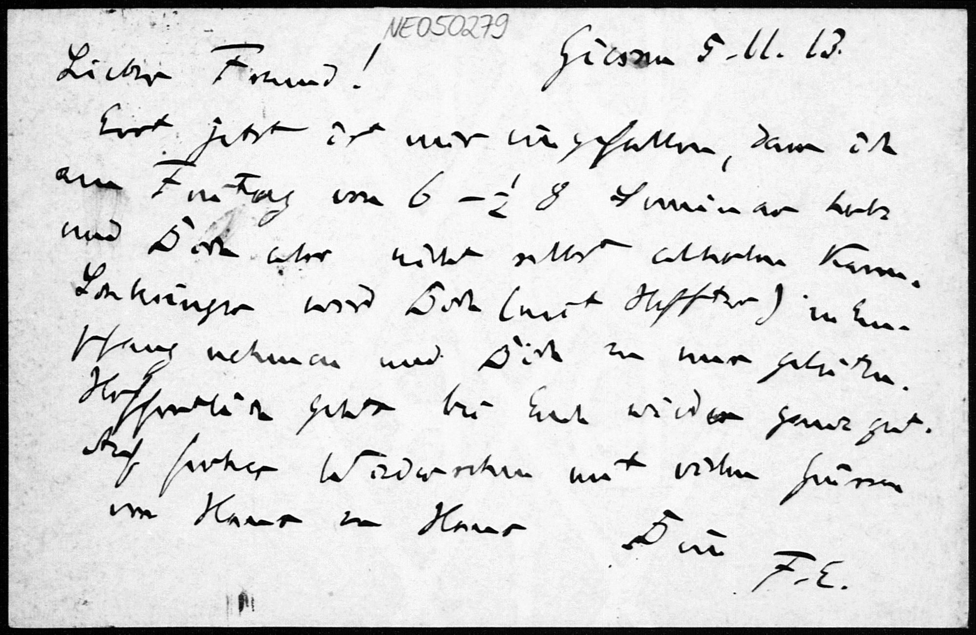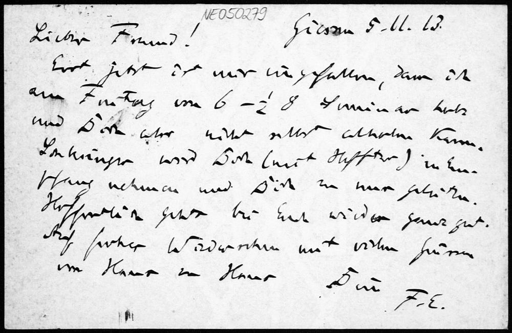 Postkarte von Friedrich Engel an Paul Stäckel vom 5.11.1913