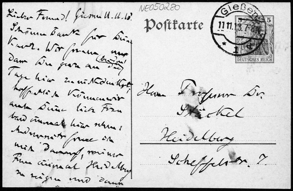 Postkarte von Friedrich Engel an Paul Stäckel vom 11.11.1913