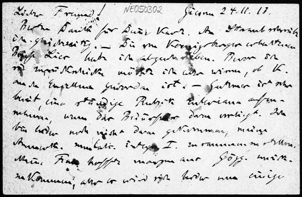 Postkarte von Friedrich Engel an Paul Stäckel vom 24.11.1913