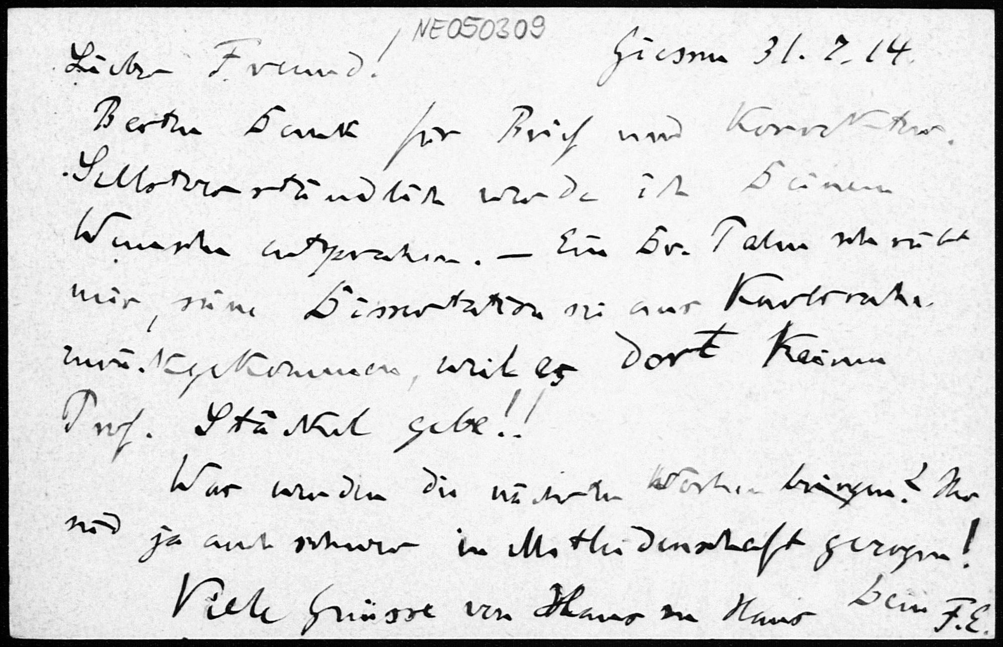 Postkarte von Friedrich Engel an Paul Stäckel vom 31.7.1914