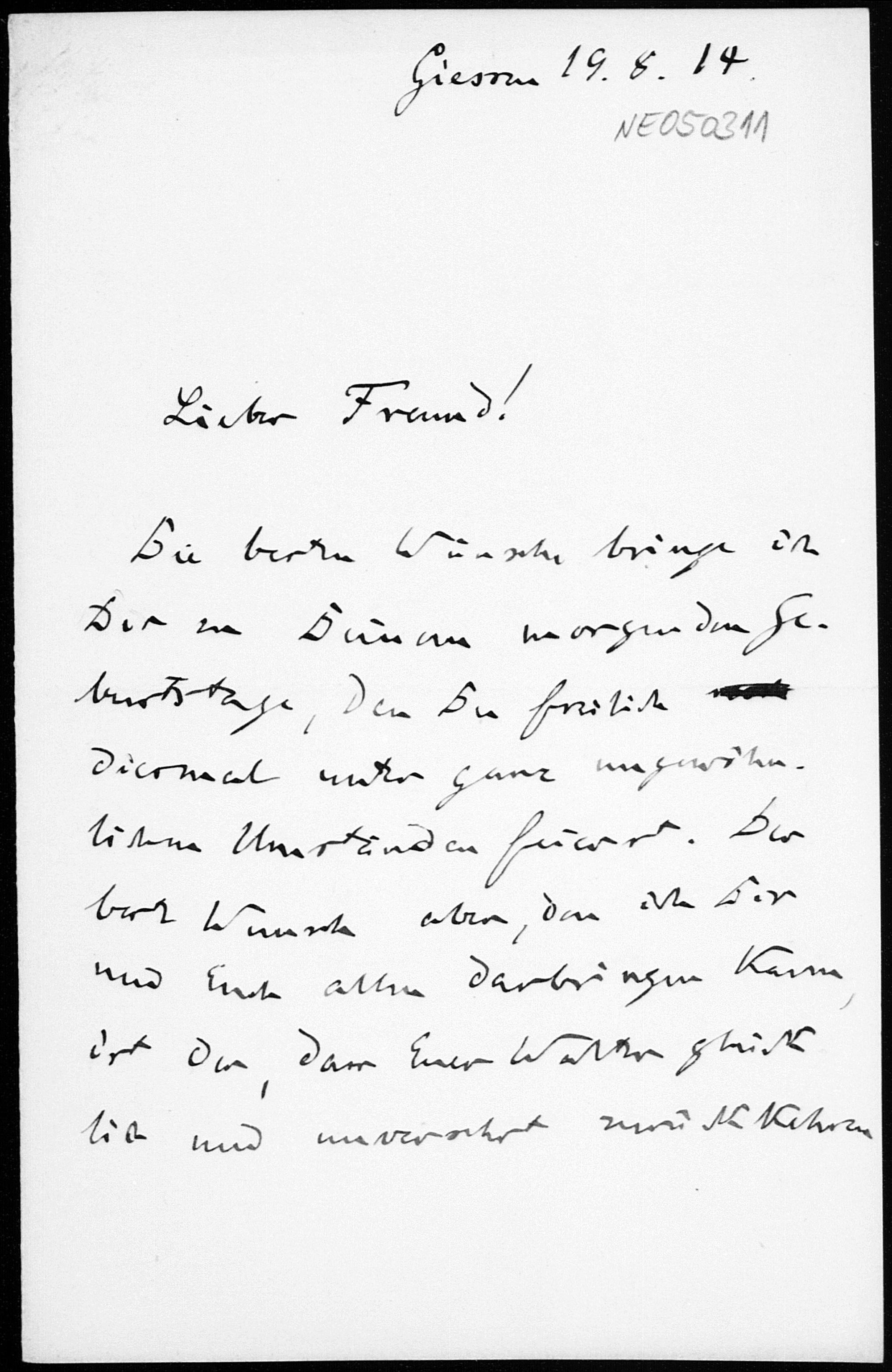 Brief von Friedrich Engel an Paul Stäckel vom 19.8.1914