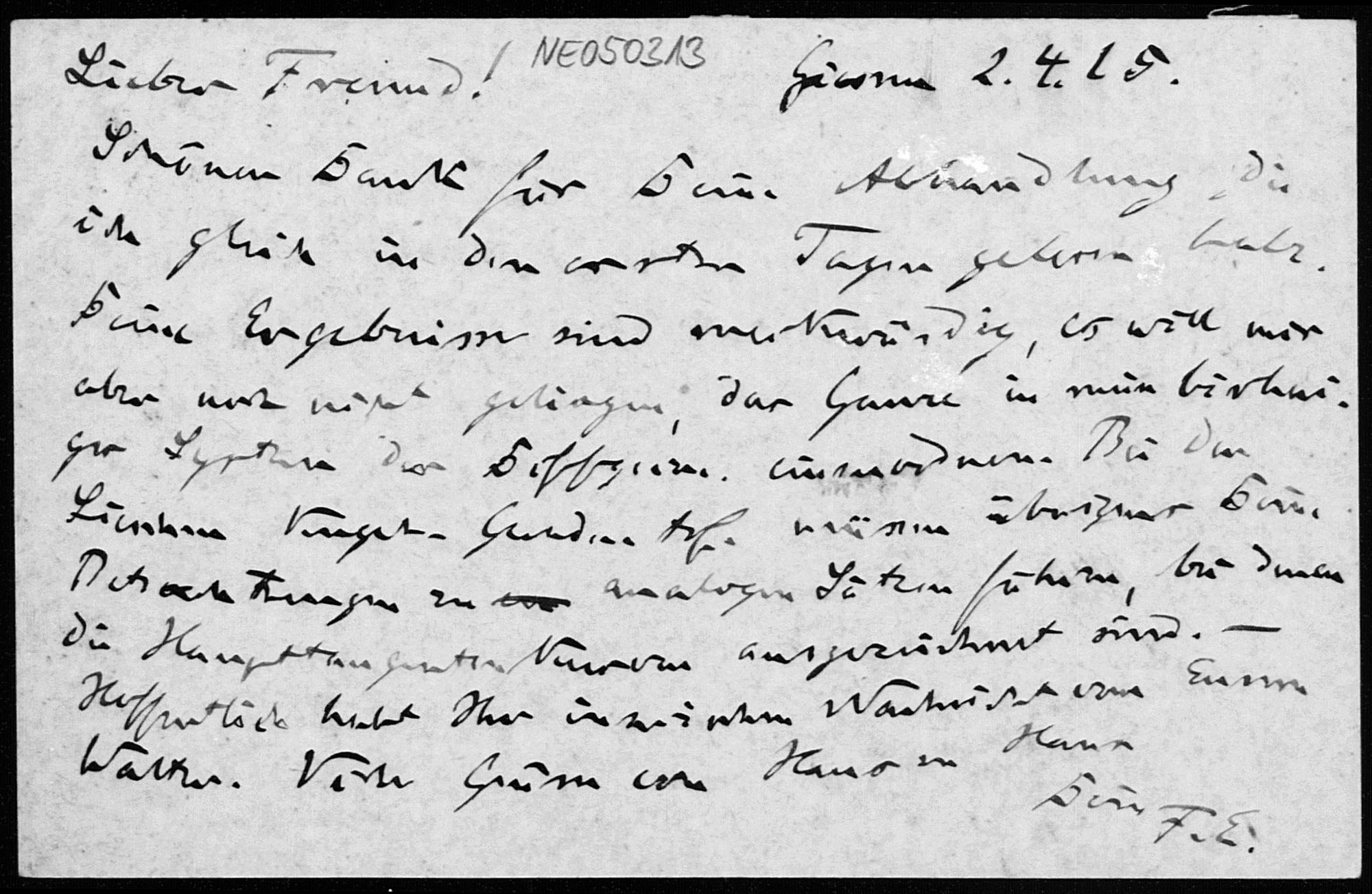 Postkarte von Friedrich Engel an Paul Stäckel vom 2.4.1915