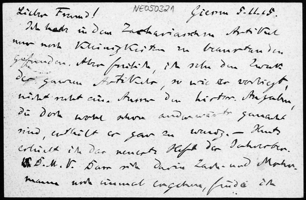 Postkarte von Friedrich Engel an Paul Stäckel vom 5.11.1915