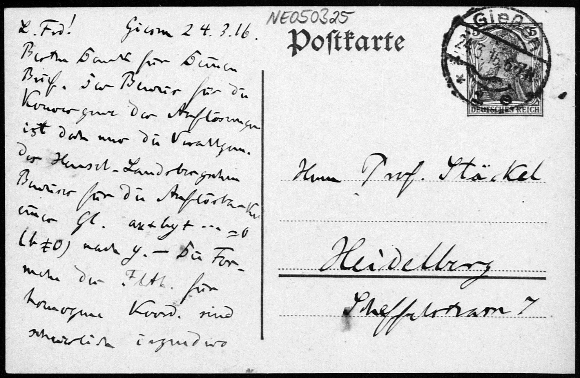 Postkarte von Friedrich Engel an Paul Stäckel vom 24.3.1916
