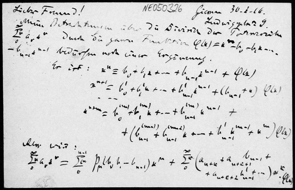 Postkarte von Friedrich Engel an Paul Stäckel vom 30.3.1916