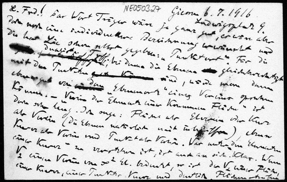 Postkarte von Friedrich Engel an Paul Stäckel vom 6.7.1916