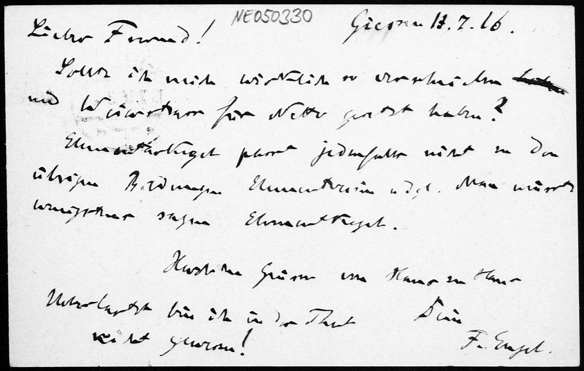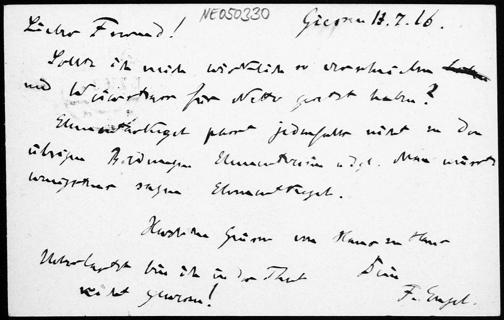 Postkarte von Friedrich Engel an Paul Stäckel vom 13.7.1916