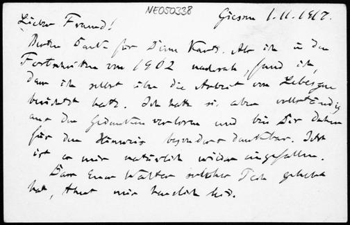 Postkarte von Friedrich Engel an Paul Stäckel vom 1.11.1917
