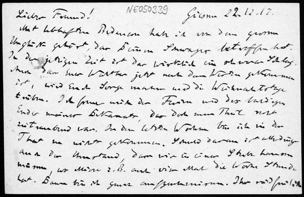 Postkarte von Friedrich Engel an Paul Stäckel vom 22.12.1917