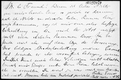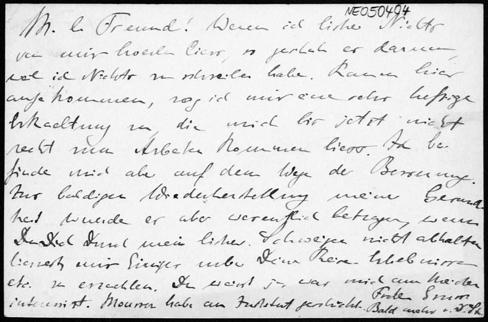 Postkarte von Eduard Study an Friedrich Engel vom 25.8.1886